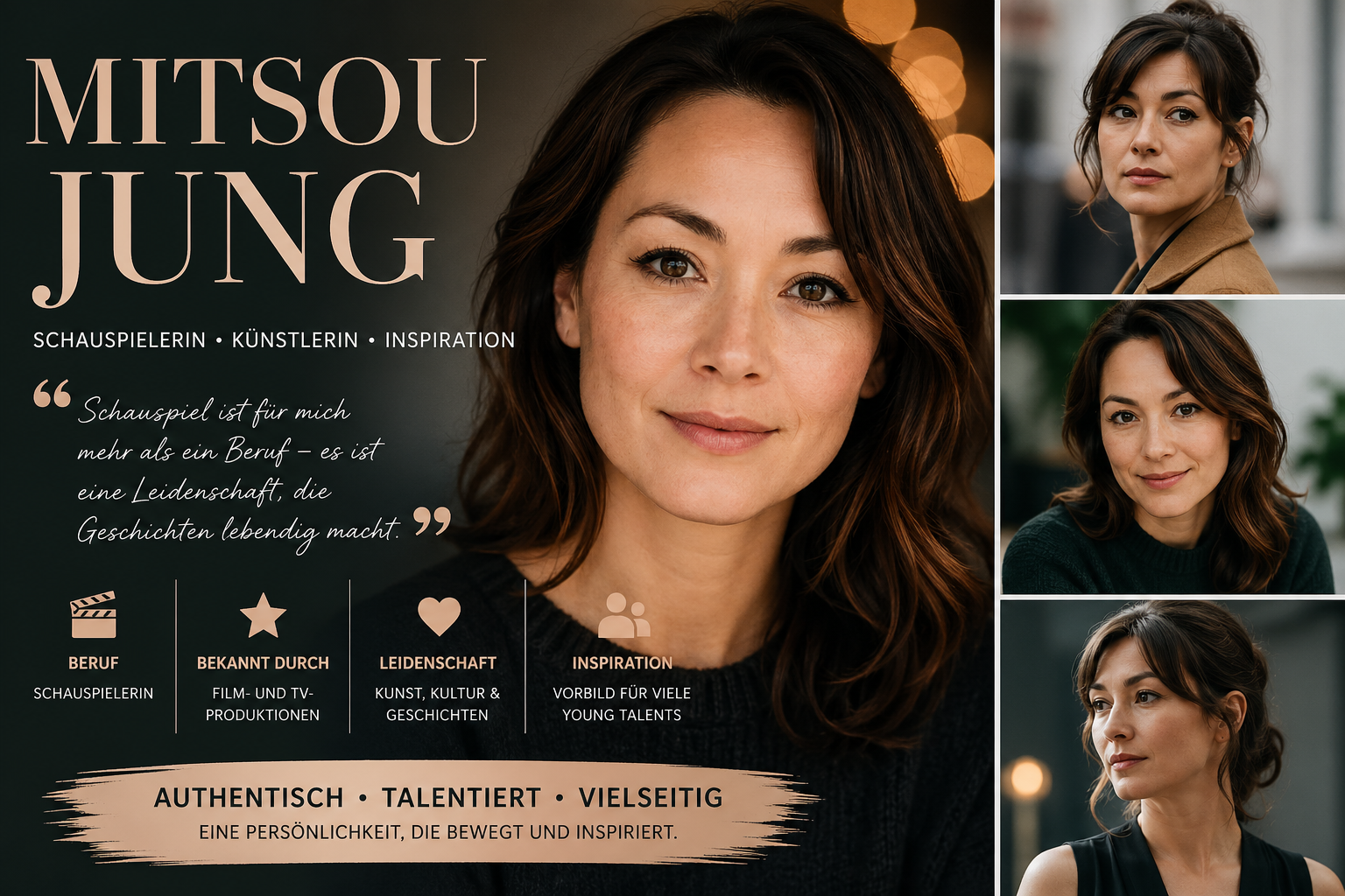 Mitsou Jung ist eine bekannte Schauspielerin, die durch ihre vielseitigen Rollen und ihre authentische Darstellung in Film und Fernsehen bekannt wurde. Sie hat sich durch Talent und harte Arbeit einen Namen gemacht.